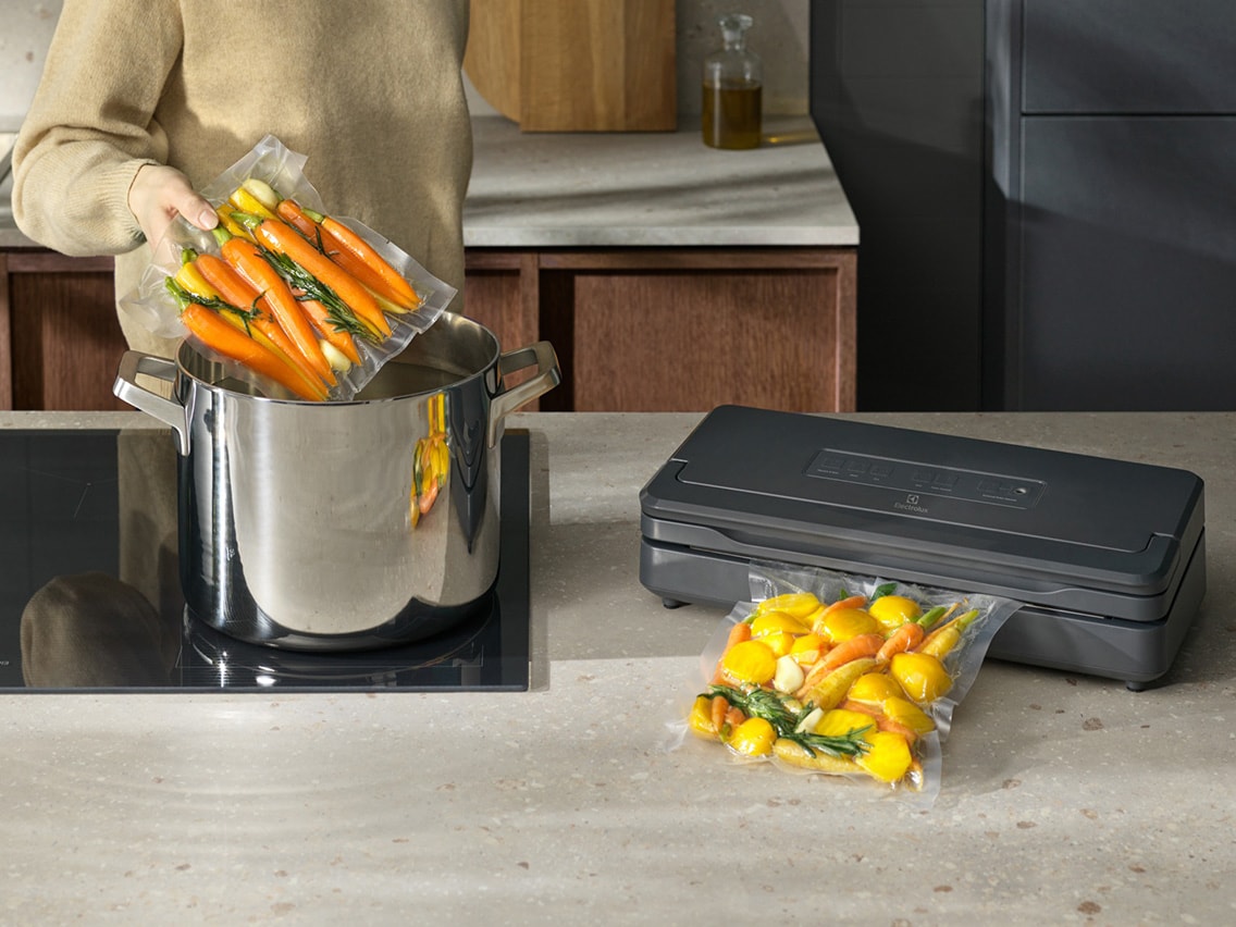 Hold råvarene ferske lenger og bevar smak og næring. Med vårt utvalg av vakuumposer og bokser kan du tilberede kjøtt, fisk og grønnsaker med presisjon, oppbevare parmesan, marinere kjøtt eller spare rester – perfekt til både sous vide og smart matoppbevaring til hverdag og fest.