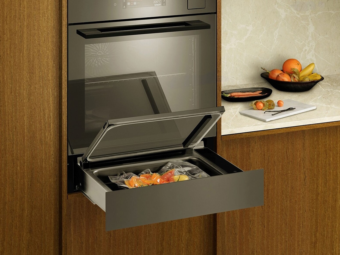 Med en integrert vakuumpakker får du både et kjøkken med sømløst design og resultater i toppklasse. Bevar råvarene lenger, mariner kjøtt på få minutter og tilbered sous vide med presisjon – akkurat som på restaurant. Alt i en løsning som passer perfekt inn i kjøkkenet ditt.