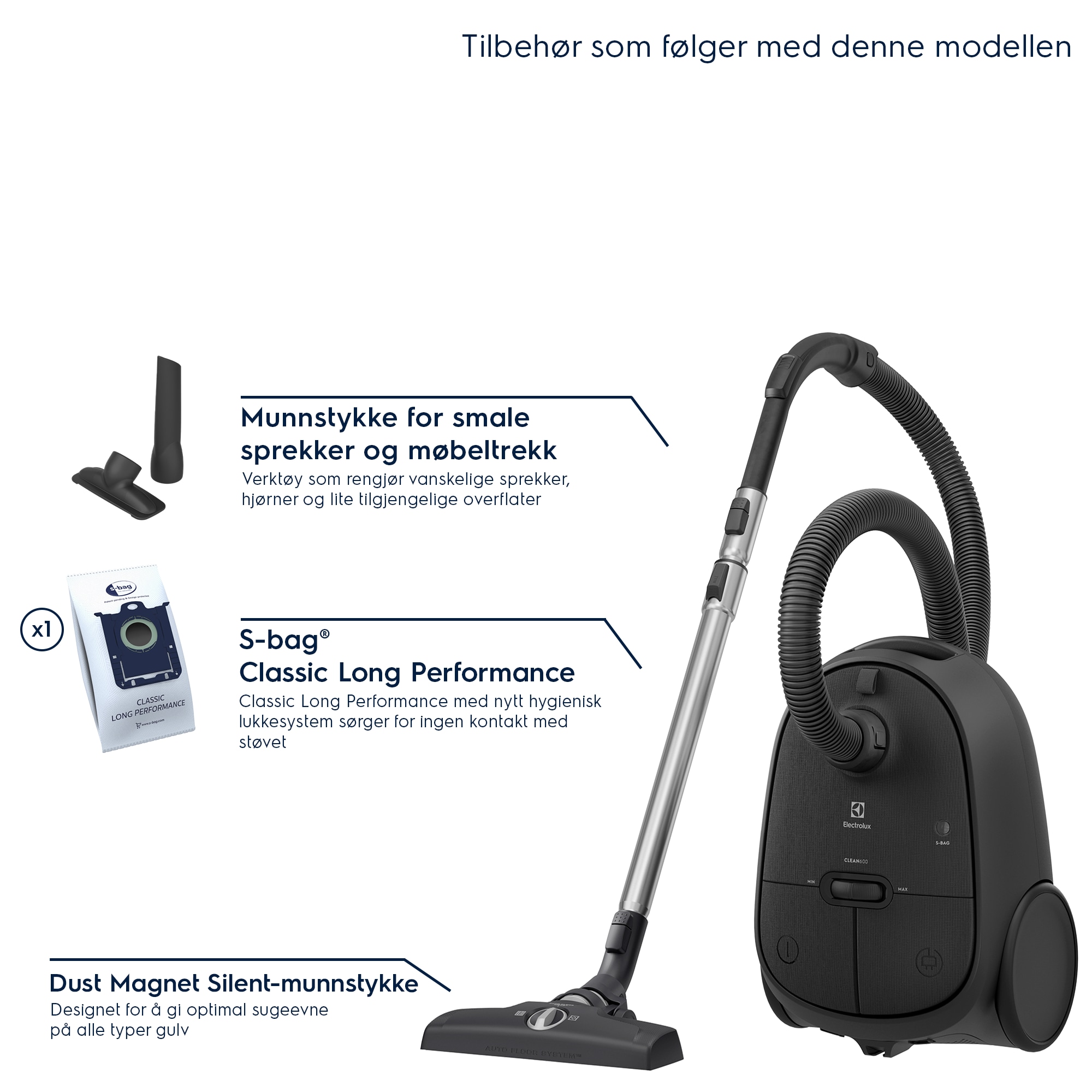 *Basert på interne tester på filtrering av mikrostøvpartikler i størrelse 0,3-10 mikron iht standard EN 60312-1 ved hjelp av standard sand- og støvpartikler.