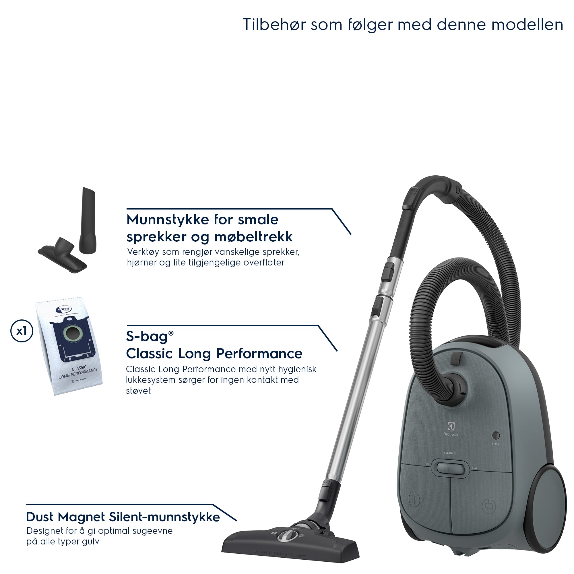*Basert på interne tester på filtrering av mikrostøvpartikler i størrelse 0,3-10 mikron iht standard EN 60312-1 ved hjelp av standard sand- og støvpartikler.