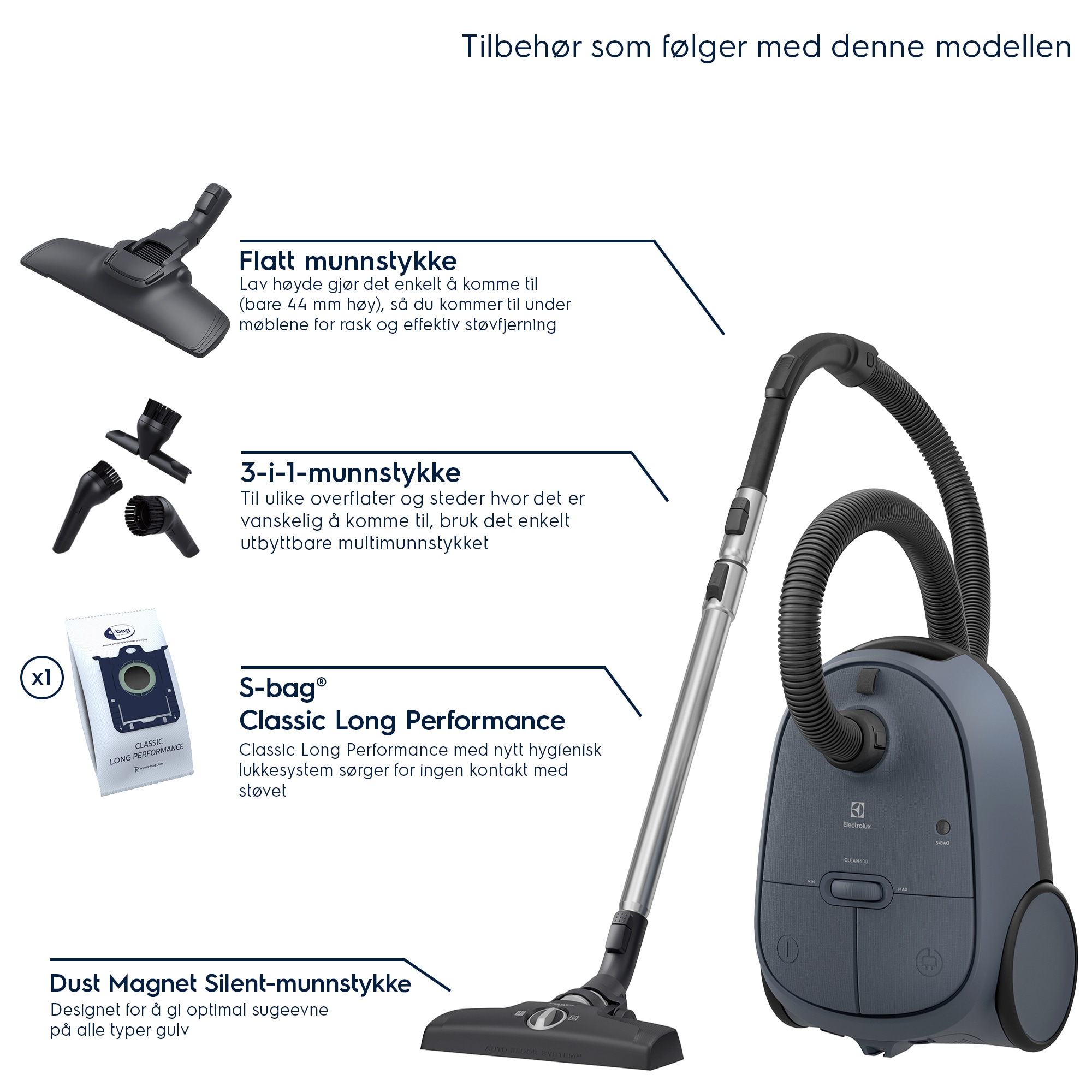 *Basert på interne tester på filtrering av mikrostøvpartikler i størrelse 0,3-10 mikron iht standard EN 60312-1 ved hjelp av standard sand- og støvpartikler.