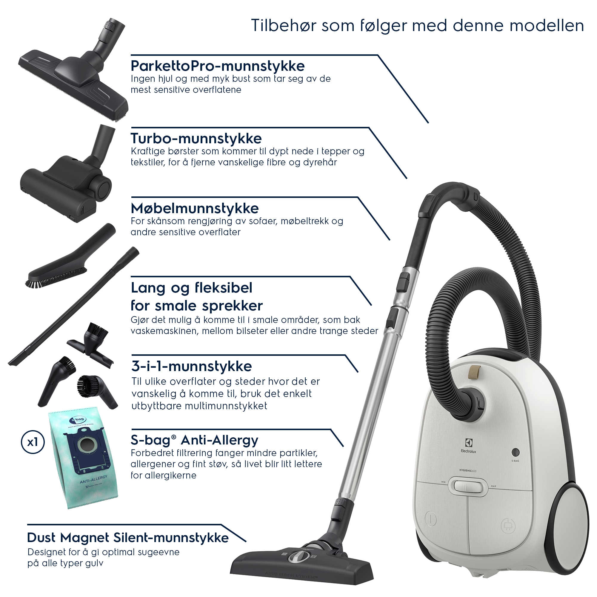 Hygienic 600 støvsuger kommer med automatiske gulvmodus på munnstykket og et spesialfilter laget for å fange opp små partikler, som gir synlige resultater.