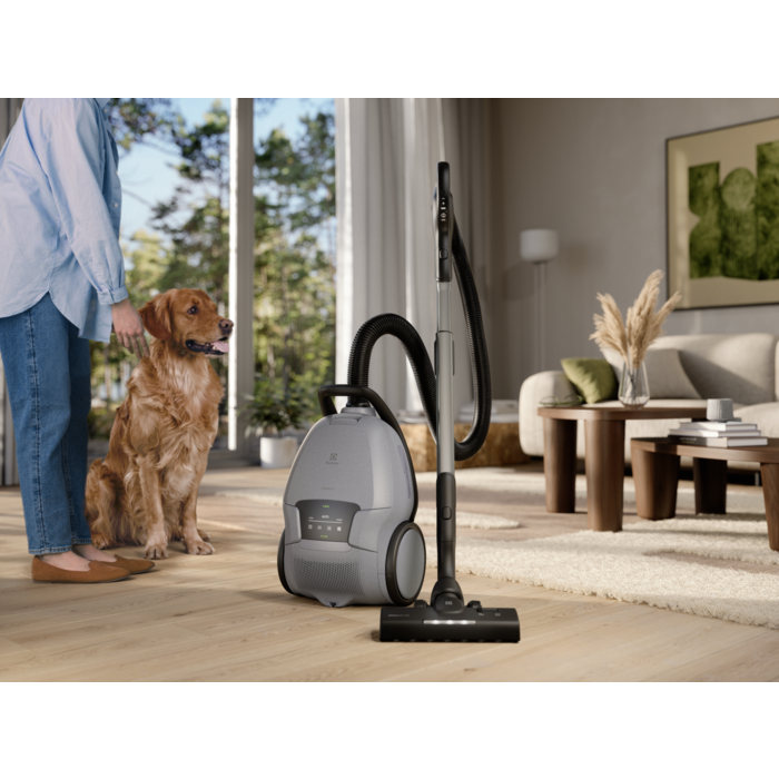 Støvsugeren har kraftig og automatisk justerbar effekt. Den fjerner raskt dyrehår fra ryer og tepper, og er dermed ideell for de som har kjæledyr. Støvsugeren og hovedmunnstykket til denne er laget med opptil 48 % resirkulert plast*.