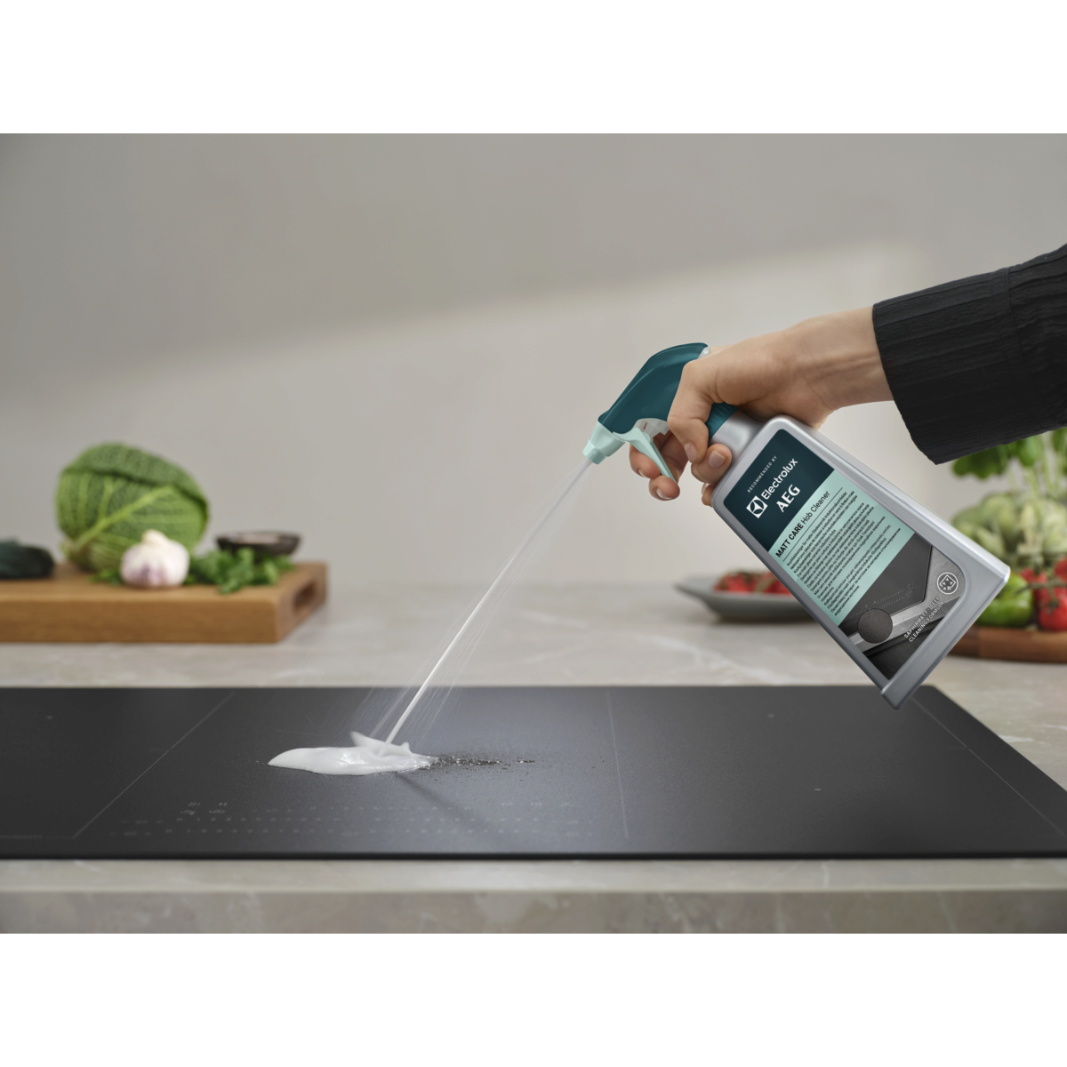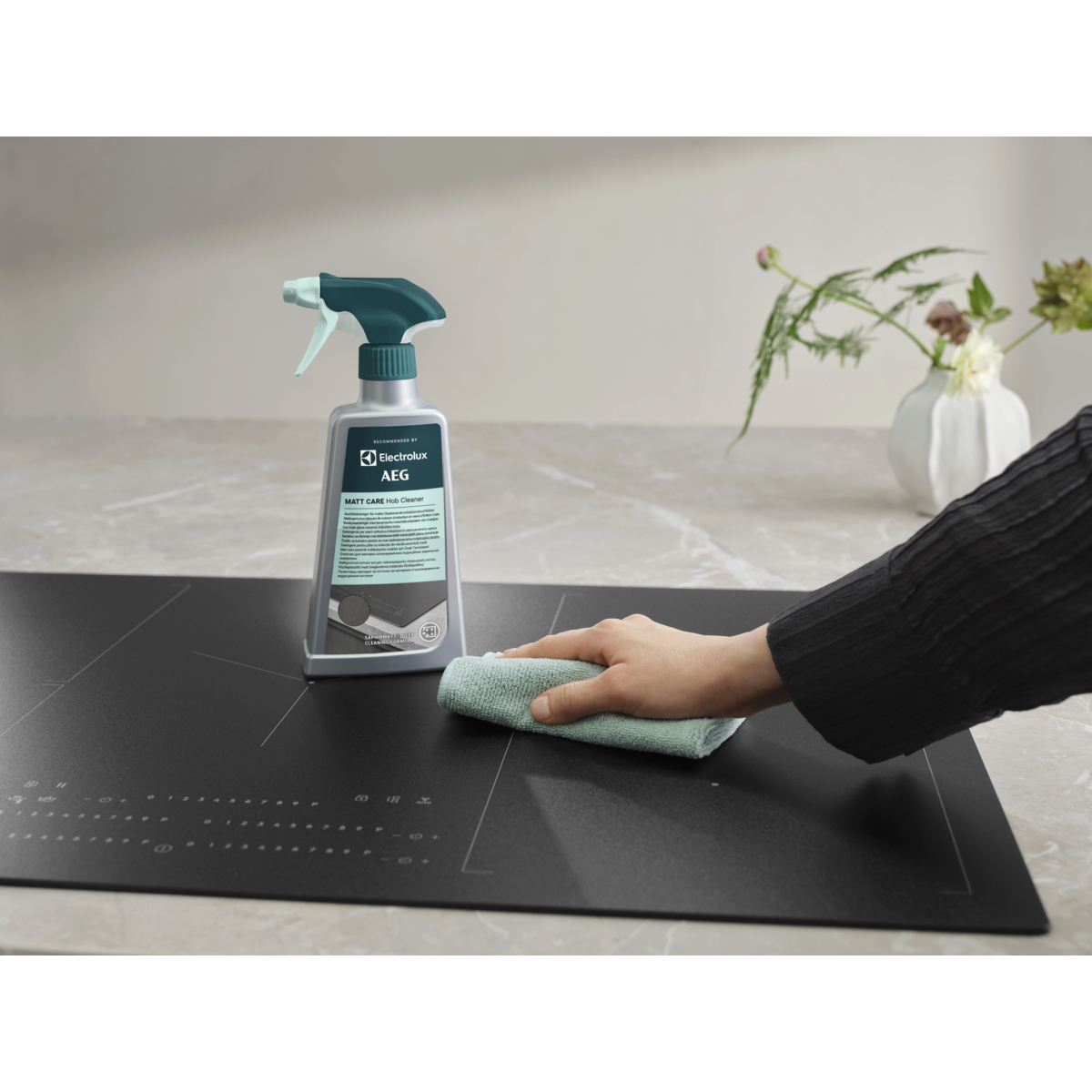 Matt Care Hob Cleaner er en spesialutviklet dyprengjøringsløsning for matte induksjonsplatetopper i glass og keramikk, slik som SaphirMatt® og SaphirMatt® SE*. Fjern fett og gjenstridige fastbrente matrester for å holde platetoppen plettfri.