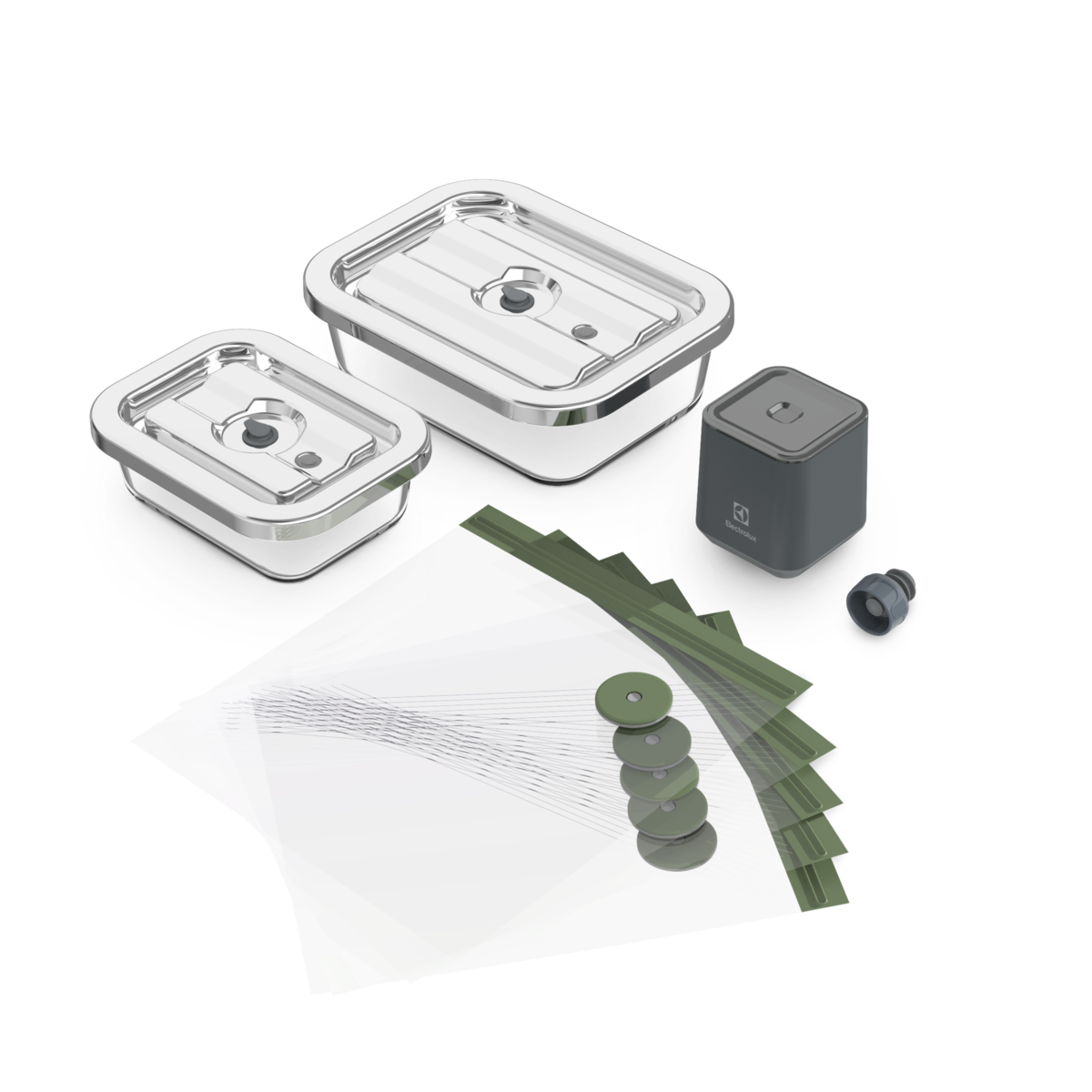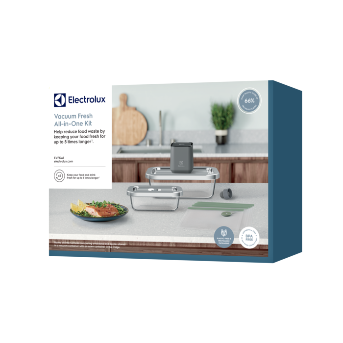 ¹Basert på interne tester som sammenlignet epler, avokado og laks som ble oppbevart i en vakuumbeholder med en åpen beholder i kjøleskapet.
