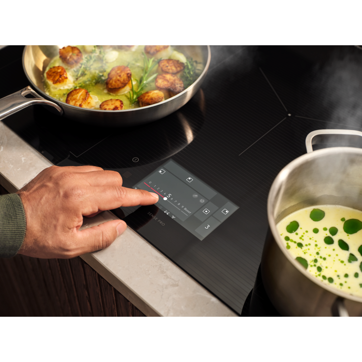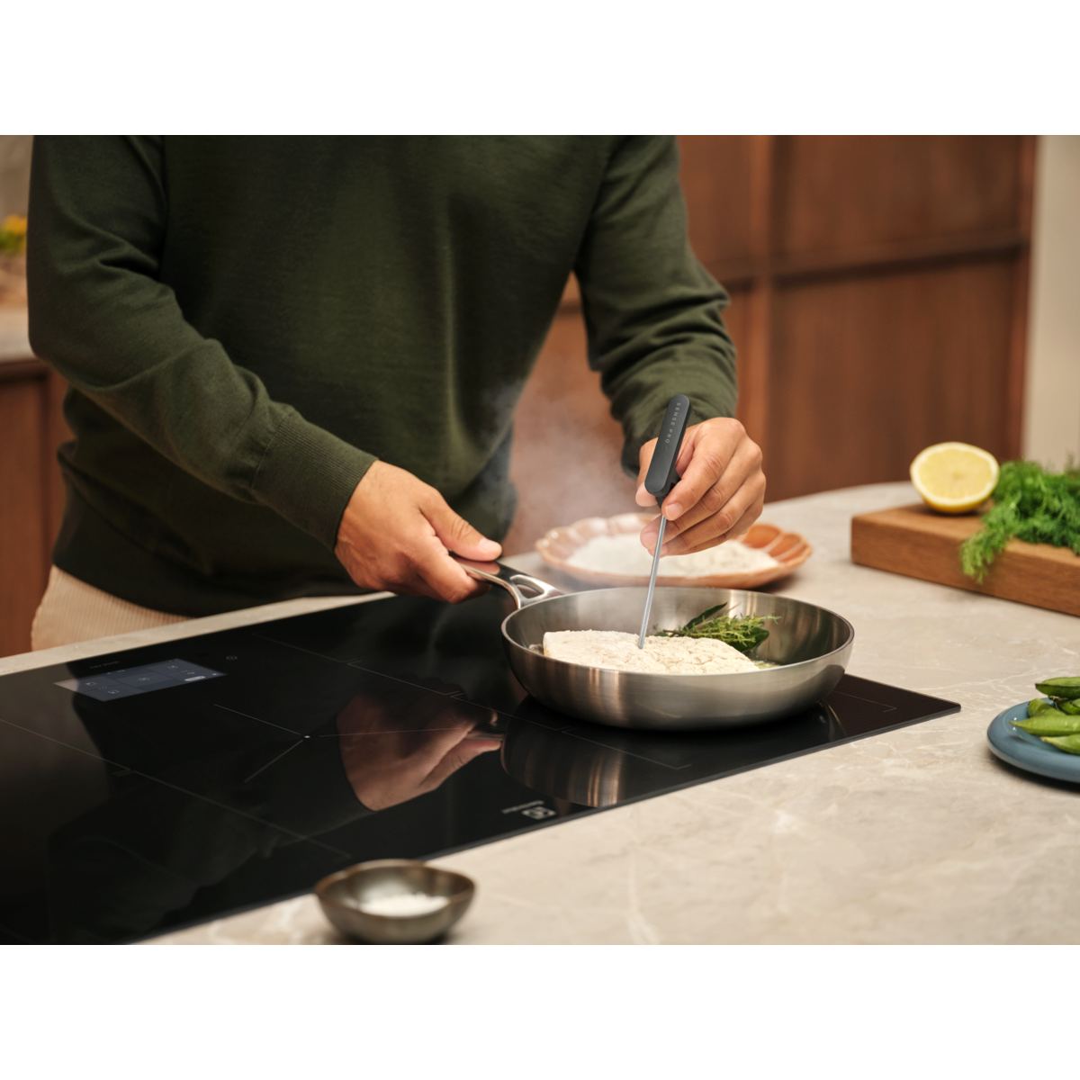 900 SensePro-induksjonsplatetoppen har et trådløst steketermometer som måler temperaturen i maten og automatisk justerer platetoppens innstillinger for nøyaktig oppvarming. Løft smaken og konsistensen til perfeksjon, uansett hva du lager.