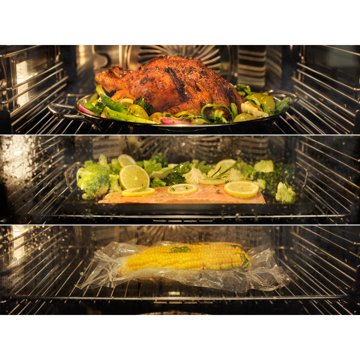 Aldri har det vært enklere å unne seg smakfullere og sunnere mat hver dag. Med et knappetrykk velger 800 MealAssist-ovnen med SteamPro riktig dampnivå for å varme opp, bake, steke eller dampe – samtidig som den bevarer 90% av vitamin C.