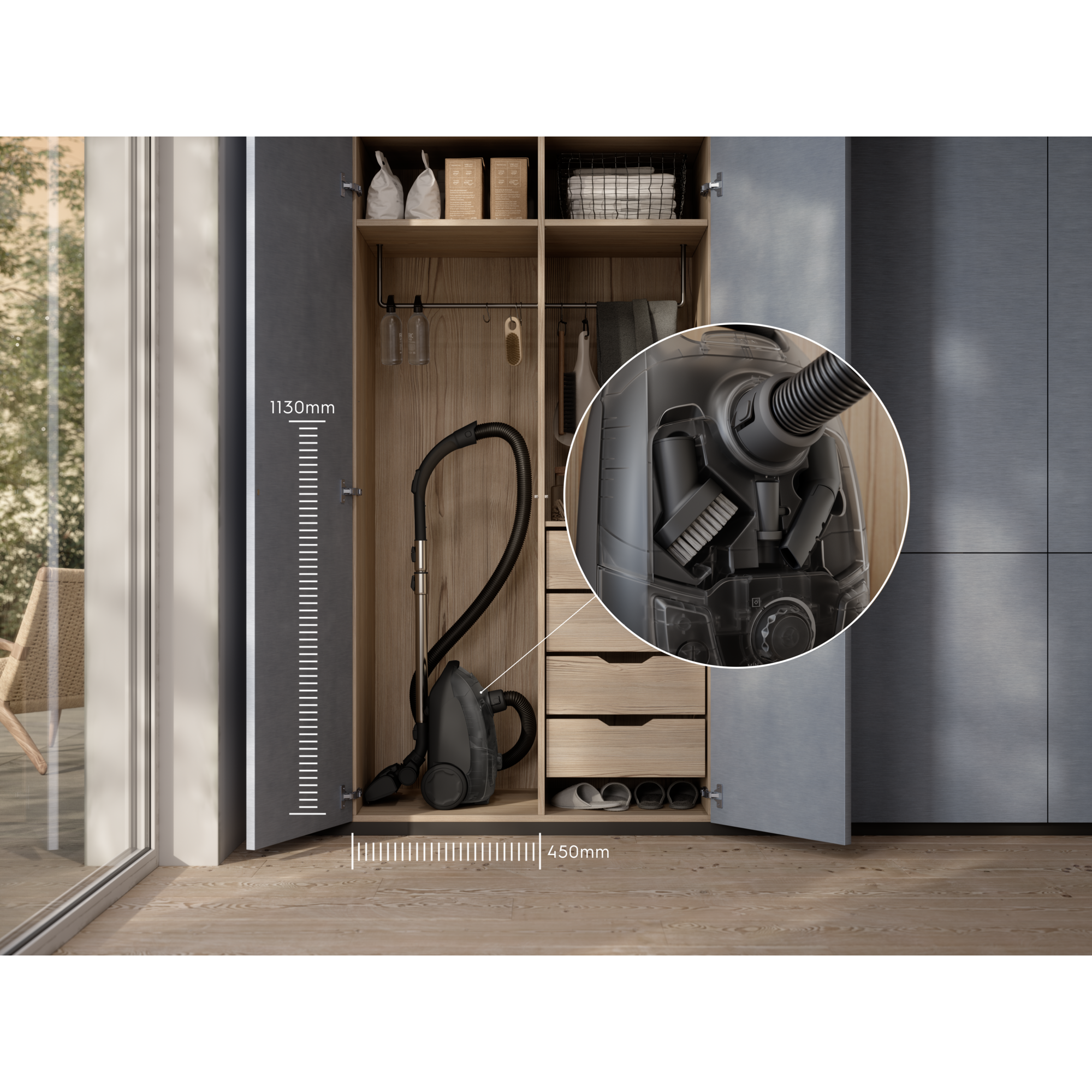 Vår mest kompakte støvsuger som effektivt fjerner støv og skitt på alle overflater. AllFloor-munnstykket skifter enkelt mellom hardt gulv og tepper, og tilbehør oppbevares på støvsugeren for lett tilgjengelighet når det trengs.