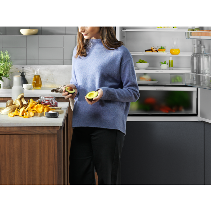 700 GreenZone-kombiskapet har en dedikert, forseglet skuff der fuktigheten holdes på et ideelt nivå ved å håndtere overflødig kondens, som hjelper til med å redusere matsvinn. Dette bevarer inntil 95% av vitaminene etter 11 dager, ved å beskytte grønnsakene med riktig mengde fuktighet.*