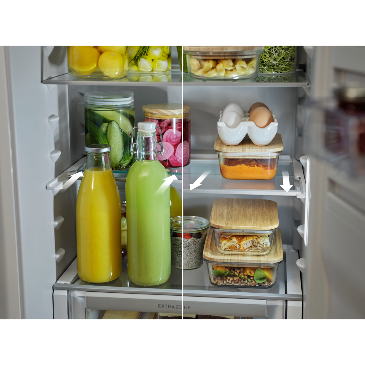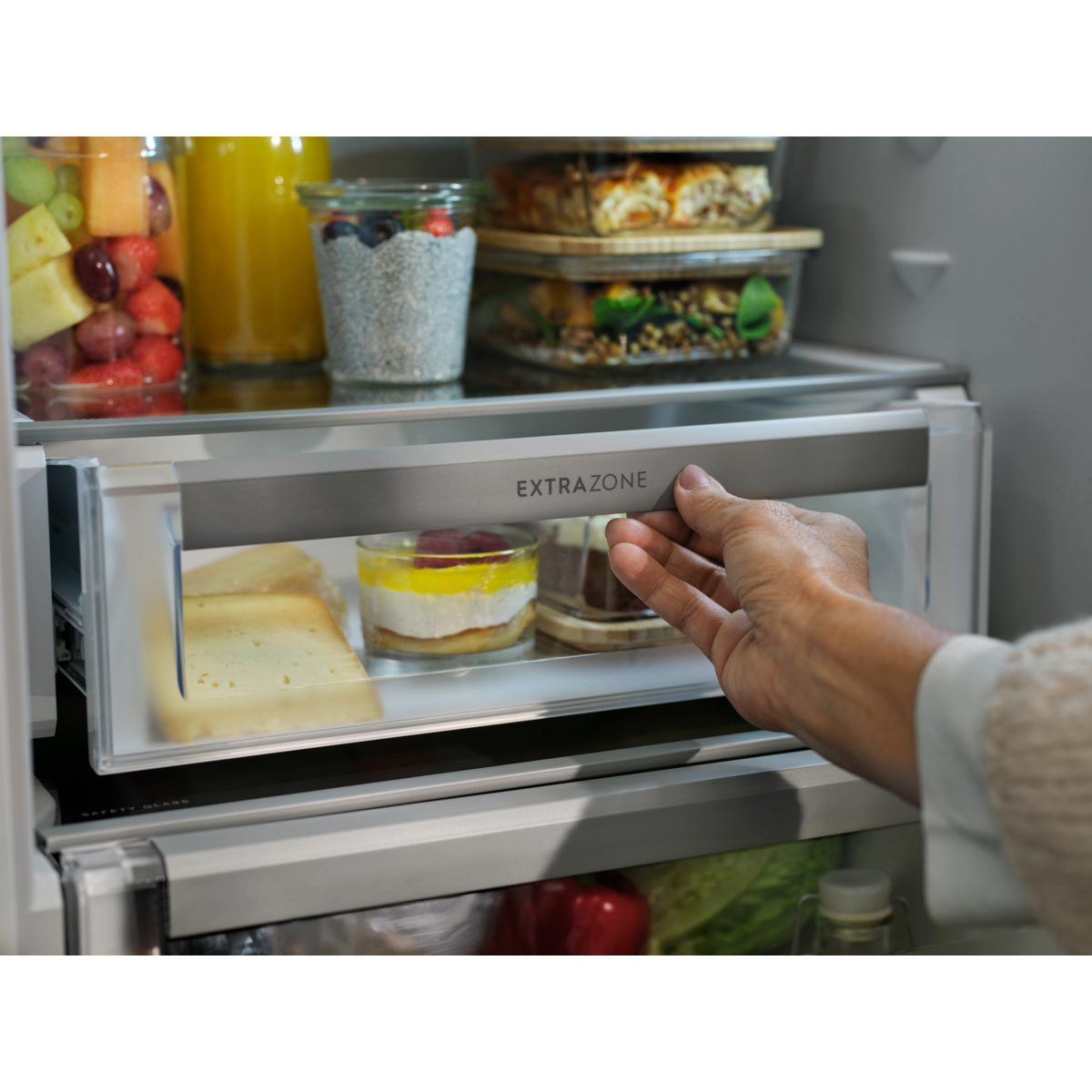 DynamicAir sørger for at innemiljøet i kjøleskapet har en stabil temperatur. Nyt smakfulle grønnsaker med Humidity Control-skuffen, og separer matvaregrupper, med ExtraZone-skuffen. CleanAir-filteret holder kjøleskapet friskluktende. Elektronisk touch-betjening gir enkel tilgang til kjøleskapets innstillinger og funksjoner.