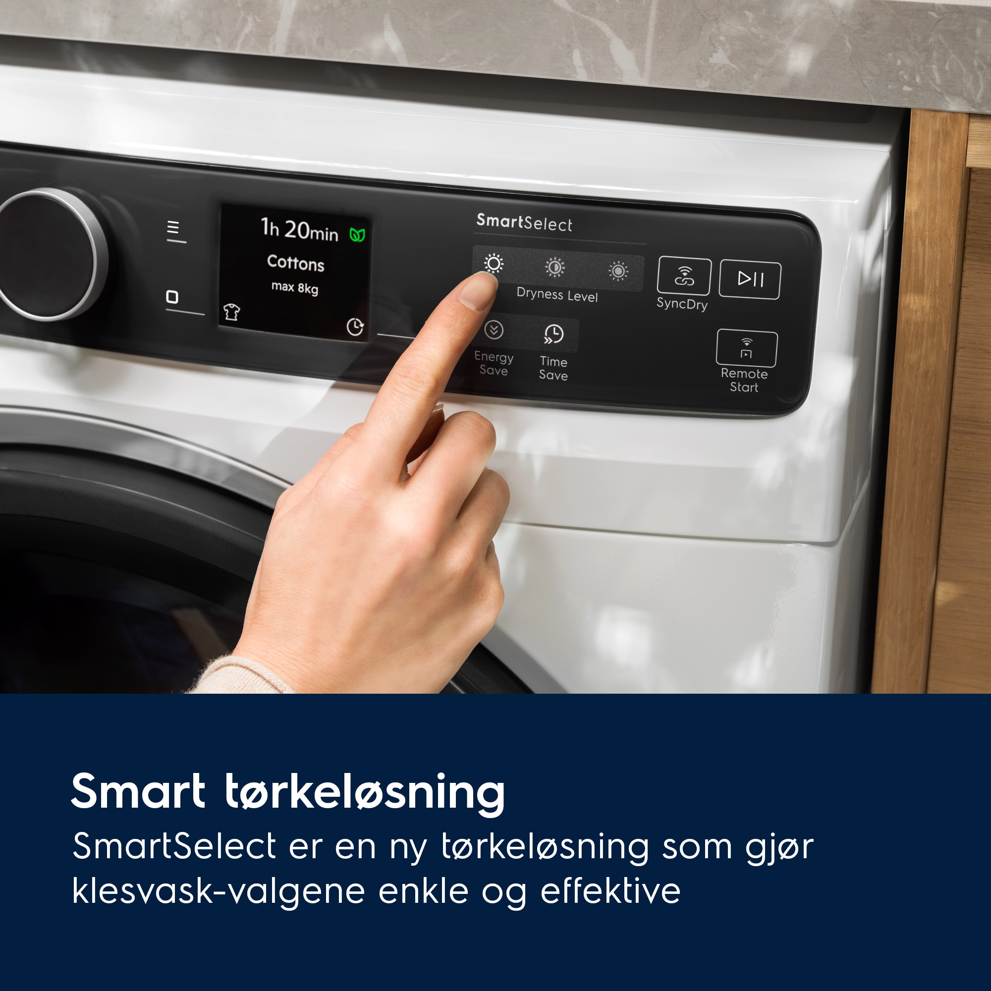 Med ett klikk er SmartSelect den innovative tørkeløsningen som gjør klesvaskvalg intuitive og mer effektive.