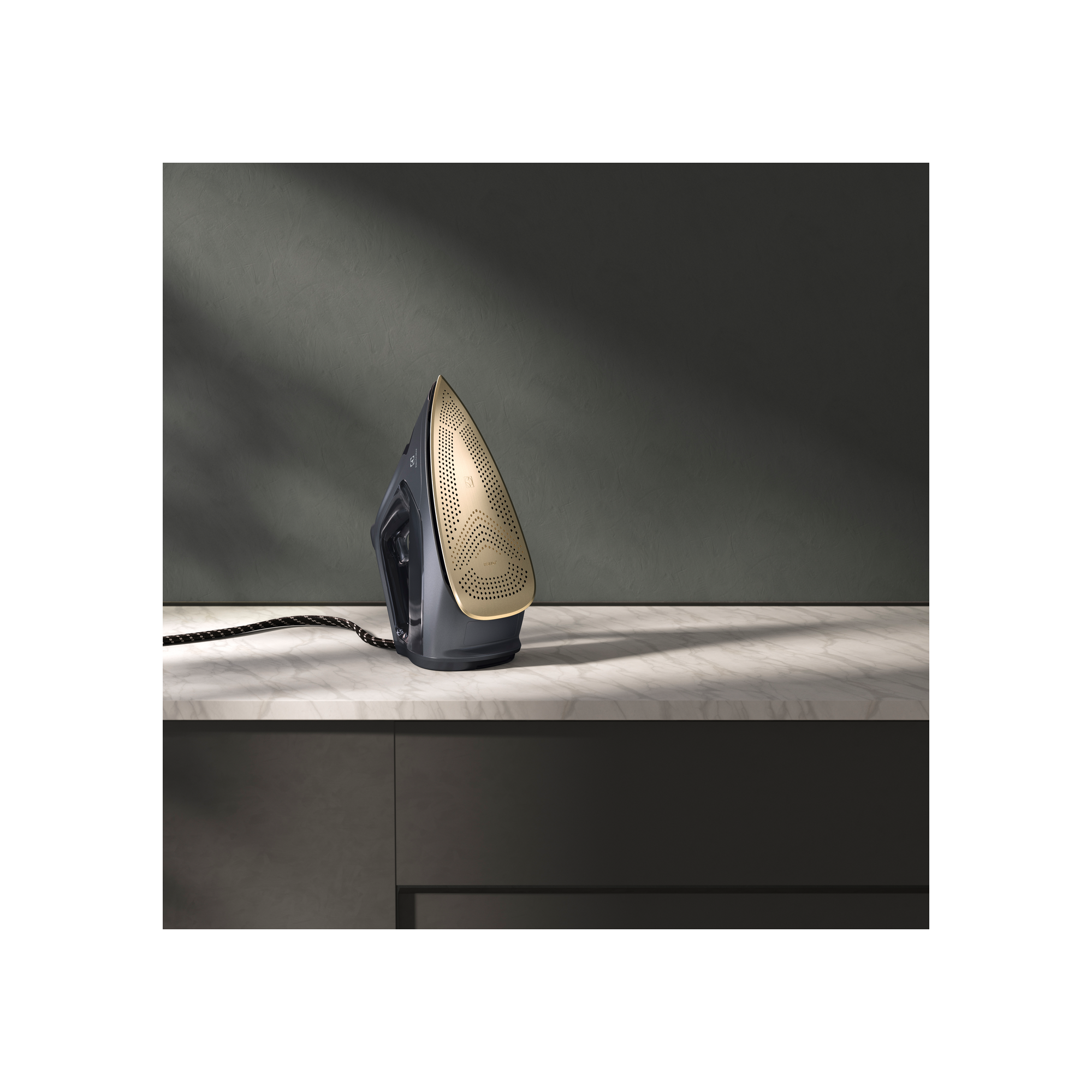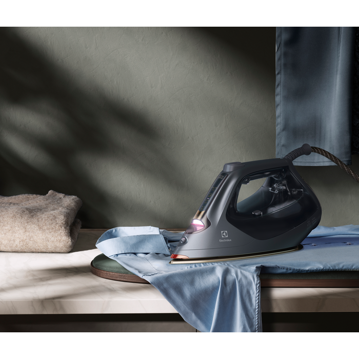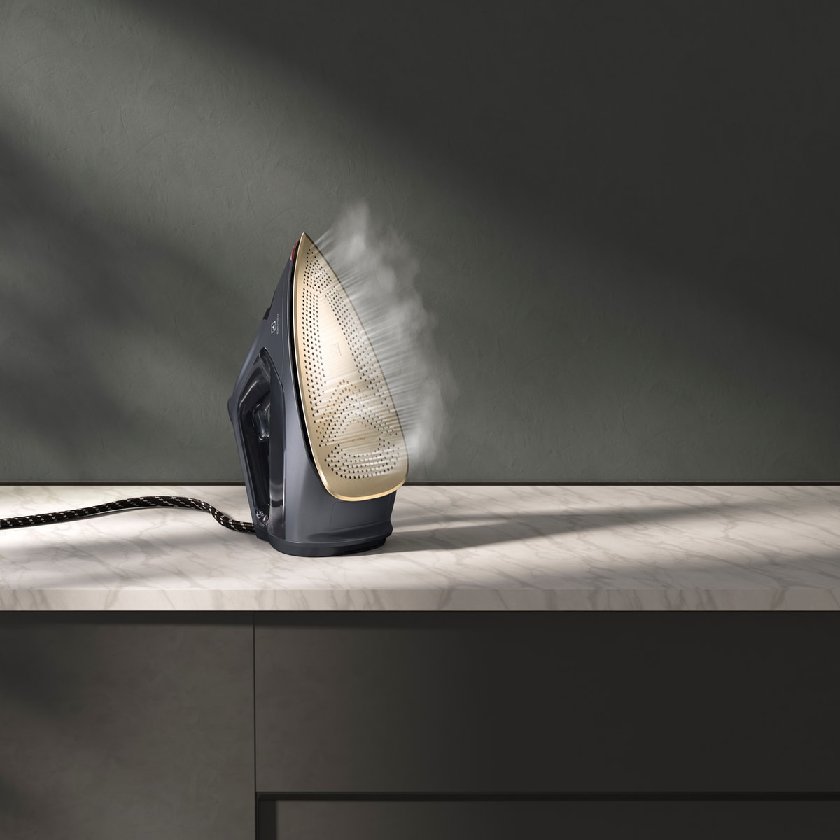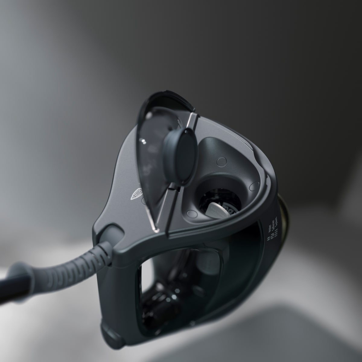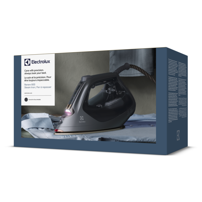 Dampstrykejern Renew 800, mørk grått med 2500 W og 3 m kabel. Jernet kombinerer kraften til varme, damp og trykk, alt sikret via den ripebestandige RESILIUM™ Ski 500 såleplaten. Skreddersydde programmer gir riktig temperatur og dampnivå for alle tekstiler, og du kan enkelt reaktivere impregneringen og holde deg tørr lenger med OutdoorCare.