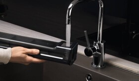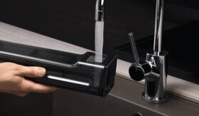 1. Trykk på lokket på vannskuffen for å åpne