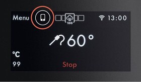 Du kan alltid overvåke din matlaging i appen. For å kontrollere ovnen fra din smartphone eller brett, må du aktivere fjernkontrollen på ovnen. Det er bare å trykke på ikonet for smartphone på skjermen på ovnens fremside (noter: om du ønsker å bruke grensesnittet på ovnen, må du koble fra fjernkontrollen.)