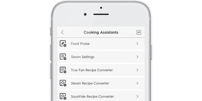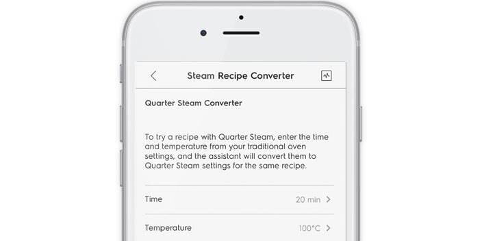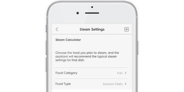 Appen My Electrolux Kitchen har mange funksjoner som kan hjelpe deg når du bruker damp. Fjernkontrollens funksjoner og innstillinger kan også brukes, men appen hjelper også med spesifikke dampinnstillinger, og konverterer oppskrifter til dampoppskrifter.