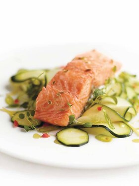 Skjær laksen forsiktig og server på oppvarmede tallerkener.
