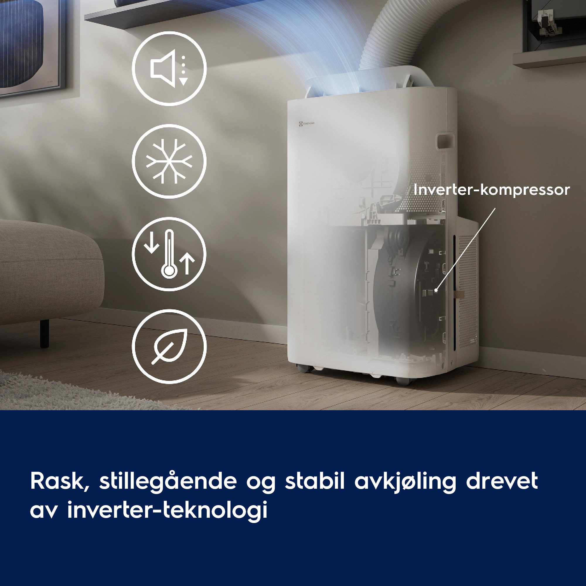 *Basert på intern test som sammenligner strømforbruket til et klimaanlegg med invertermotor med Electrolux 600 bærbart klimaanlegg med fast motor.
