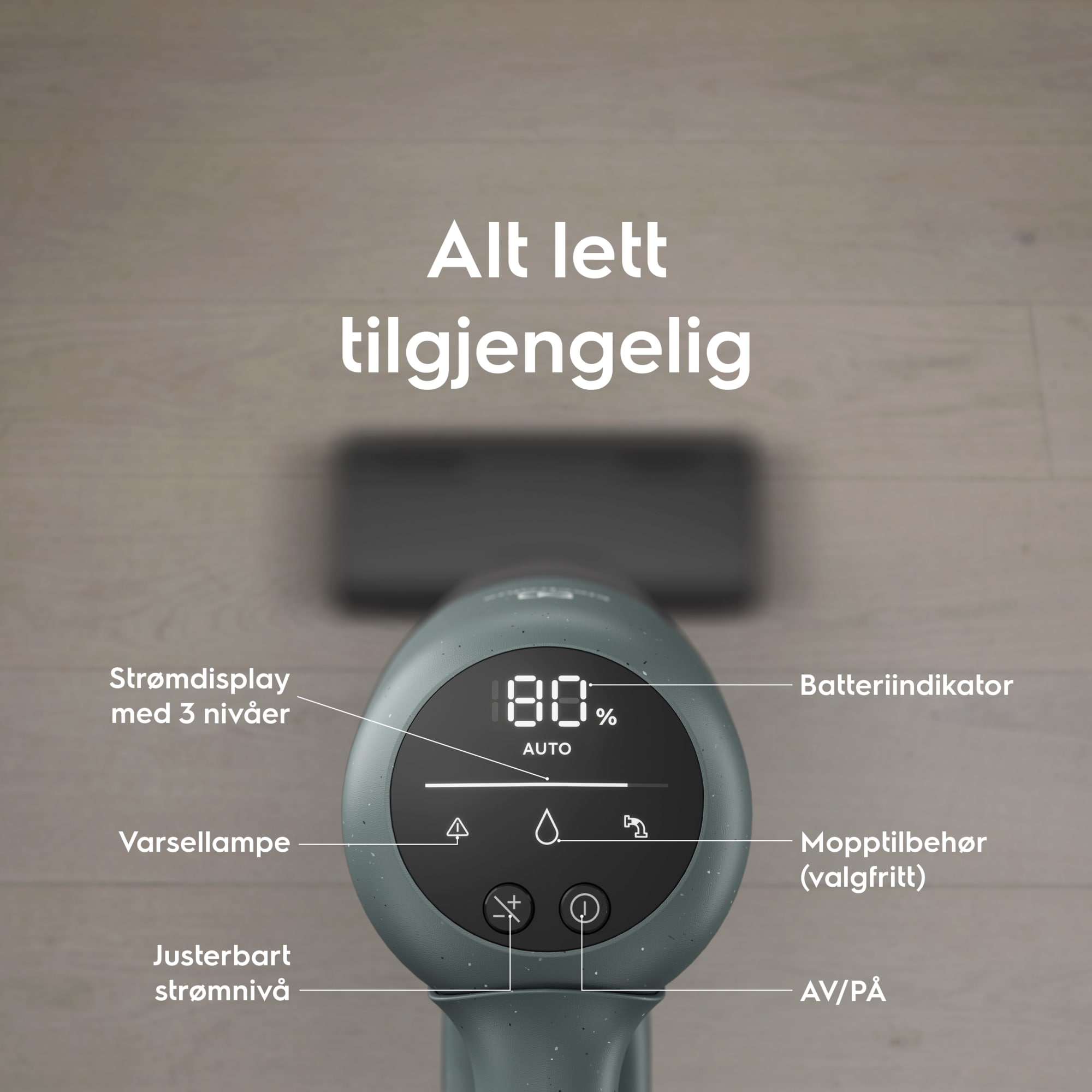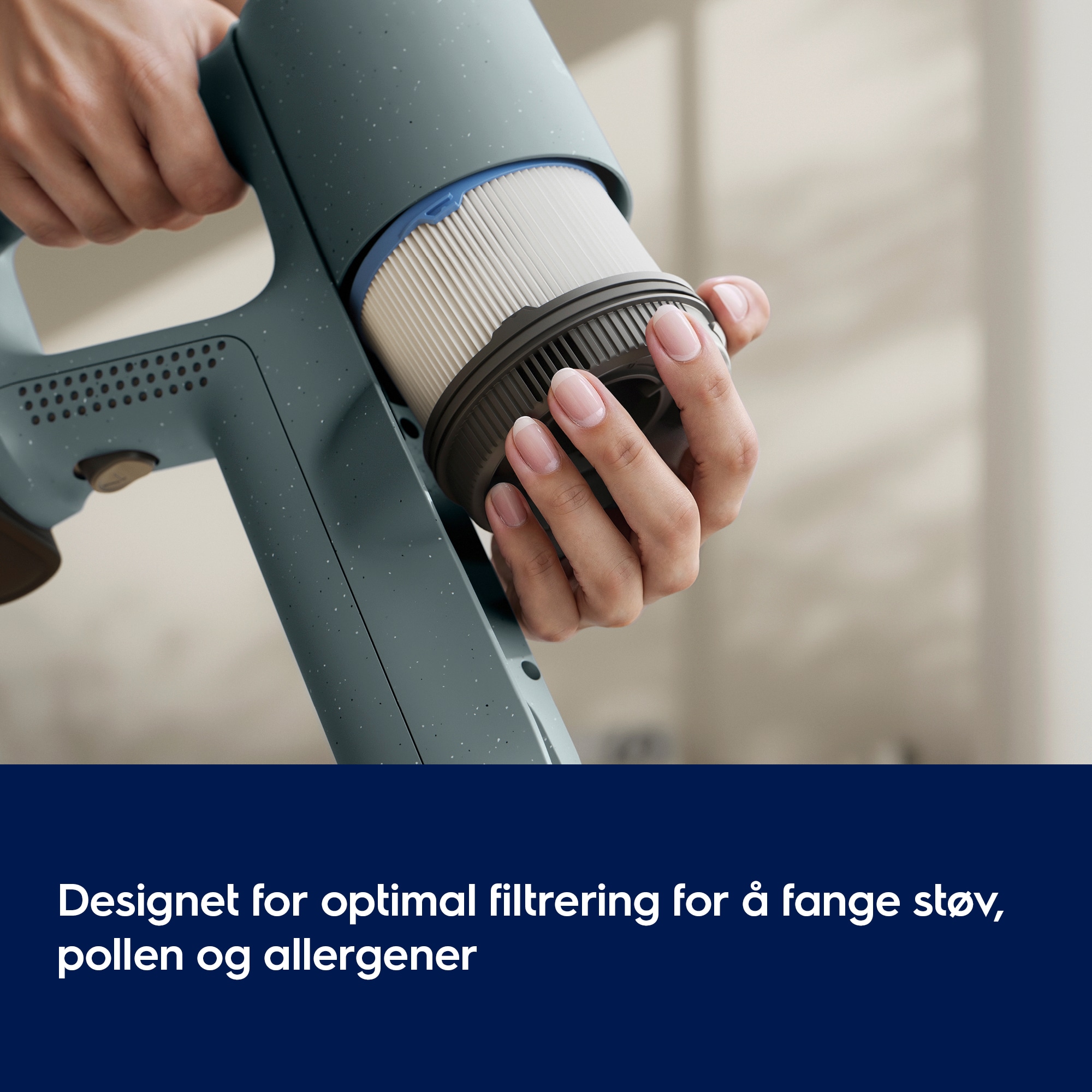*Sammenlignet med kjøretid i Boost.modus. **Basert på interne tester i henhold til IEC 62885-4-standarden for måling av driftstid på håndholdt del og hele støvsugeren ved laveste modus.