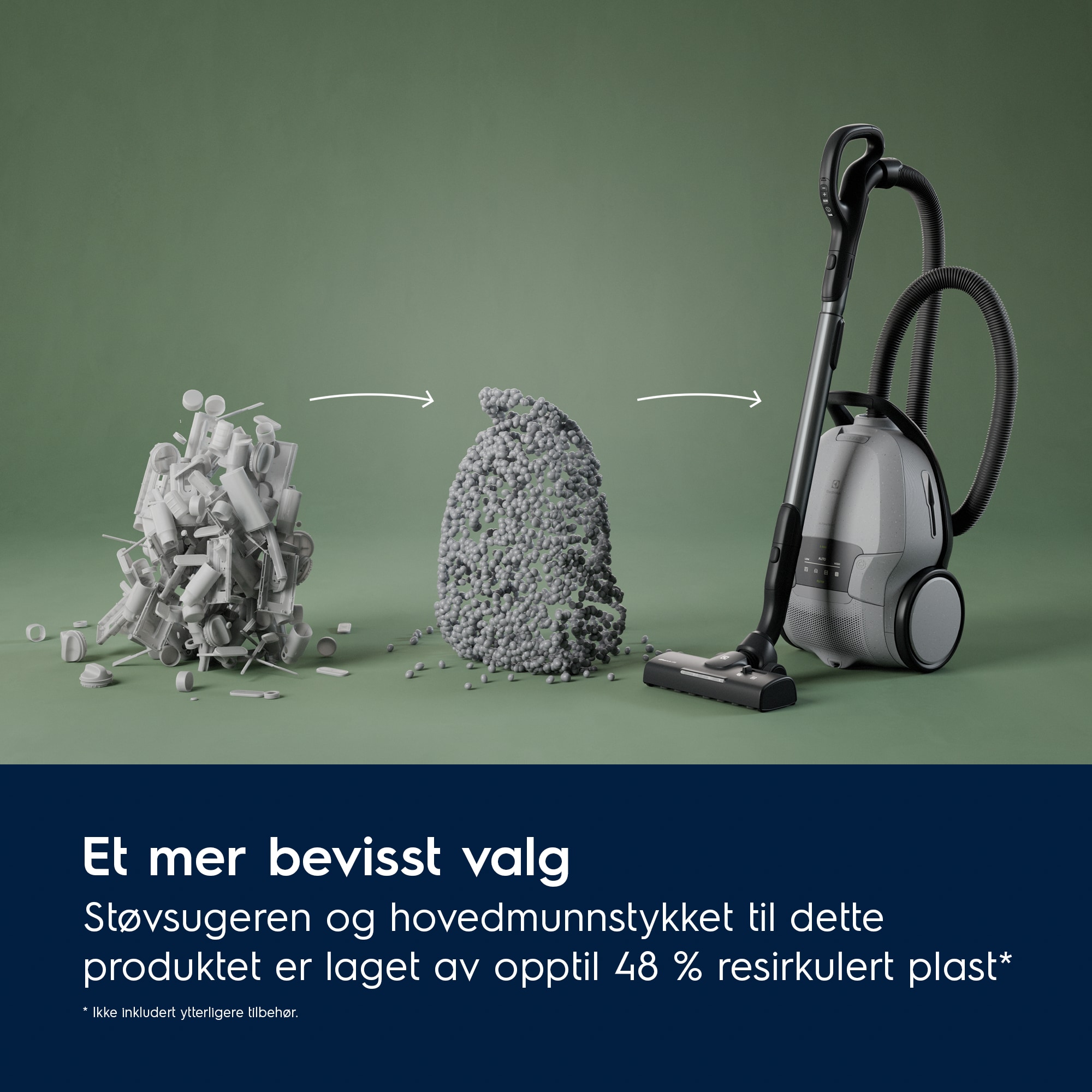 *Ytterligere ansvarserklæring for Frankrike - Støvsugeren, inkludert alt tilbehør, er laget av opptil 29 % resirkulert materiale av den samlede vekten, sammensatt av resirkulert plast»