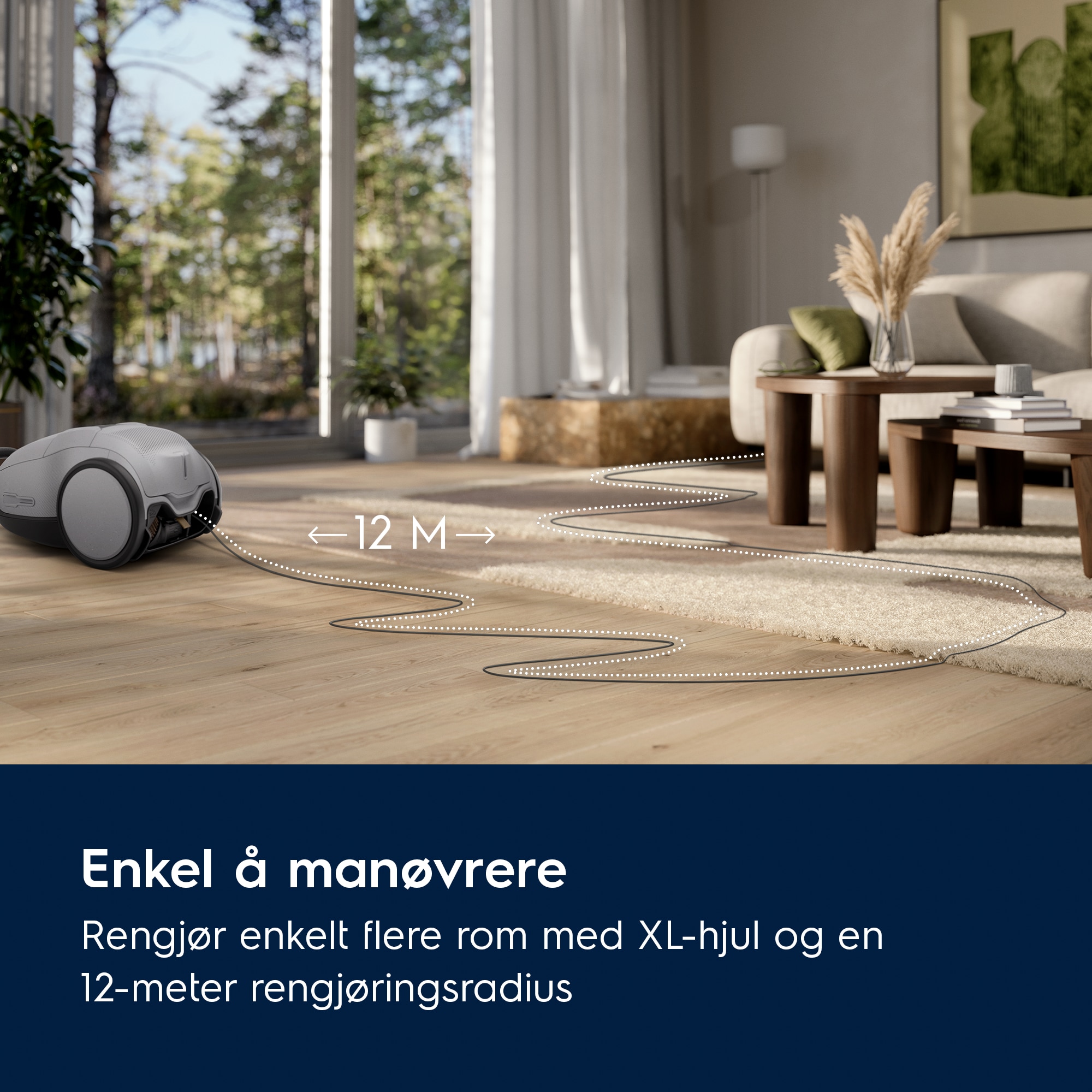 Støvsugeren har kraftig og automatisk justerbar effekt. Den fjerner raskt dyrehår fra ryer og tepper, og er dermed ideell for de som har kjæledyr. Støvsugeren og hovedmunnstykket til denne er laget med opptil 48 % resirkulert plast*.